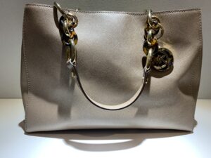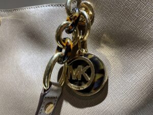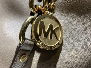 レディースのバッグにはこのようにMKのチャームが付いていることが多く