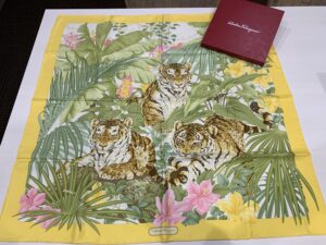 フェラガモのスカーフも他のデザインと比べこのような動物柄は人気が高い為通常のスカーフと比べ高値でのお買取りをさせていただいております✨