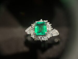 主石であるエメラルドは勿論のこと、脇石のダイヤラウンドカットやバゲットダイヤが施せれており高級感がございます✨