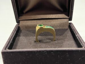 中央では無く端にトルマリンが1ポイントでデザインされたリングとなっております✨