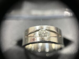 こちらのリングはダイヤモンドが1ポイントで装飾されているシンプルなデザインなのでどのような服装にも合わせやすいリングになっております(^^♪