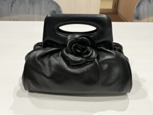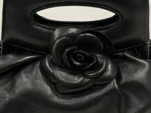 今回はフラワーモチーフが特徴的なカメリア(椿)という花が施されたエレガントなデザインバッグとなっております!